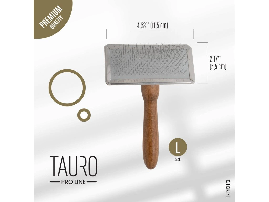 Kvalitná kefa pre psov Tauro Pro Line veľkosť L s kovovým okrajom je ideálnou voľbou pre pravidelnú starostlivosť o srsť psa. Táto profesionálna kefa na srsť účinne vyčesáva uvoľnené chlpy, pomáha pri pĺznutí a zároveň dodáva srsti objem a prirodzený lesk.